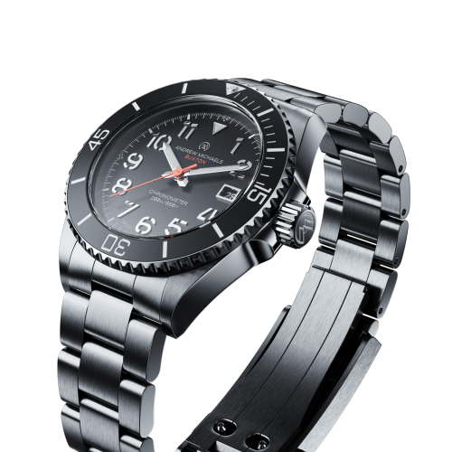 Expertly crafted from 316L stainless steel, the case and bracelet deliver excellent durability and corrosion resistance. The unidirectional rotating bezel is fitted with a scratch-resistant ceramic insert that retains its flawless appearance for years. Protected by a sapphire crystal with anti-reflective coating and equipped with a screw-down crown and reinforced 6-screw case back, the watch achieves an impressive 200-metre water resistance.